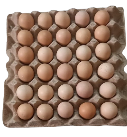 Kadaknath eggs are laid by Kadaknath chickens (KarungKozhi - Black Hen, a unique Indian breed known for its black feathers and skin. These eggs are often smaller than regular hen eggs and have a dark brown to pinkish-tinted shell. They are prized for their distinctive flavor and are considered a delicacy in some regions of India.